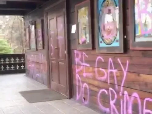 În mediul online a apărut, vineri, o filmare în care se observă că pe pereţii din lemn şi icoanele exterioare ale Bisericii au fost scrise cu spray roz diverse inscripţii - LGBT, #BLM, potrivit Agerpres.