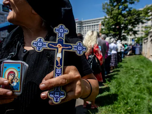 Pe Dealul Mitropoliei credincioși de toate vârstele așteaptă încă la rând pentru a se ruga la moaște, în ciuda caniculei.