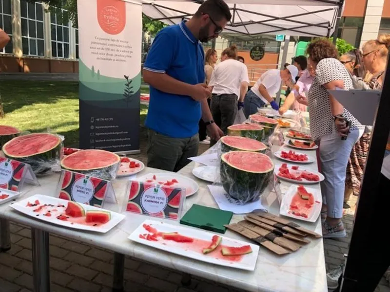 “Pepeniada” organizată de USV Iaşi i-a ţinut pe copii lipiţi de farfuriile cu bucăţi de harbuz, în timp ce adulţii şi-au luat în serios rolul de degustători şi au parcurs traseul harbujilor, testându-i pe fiecare.