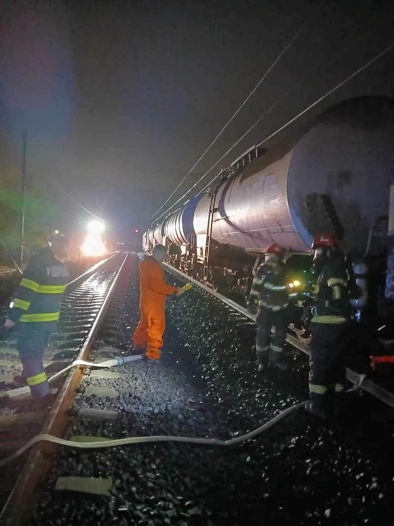 UPDATE 20.40 La acest moment, nu mai sunt scurgeri din cisternă. A fost montat un robinet, iar trenul își va relua deplasarea.