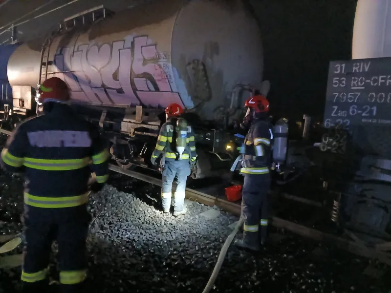 Un incident feroviar s-a produs într-o gară din Mureș. Un tren format din 12 vagoane tip cisternă, încărcate cu benzină s-a oprit în stația Albești, una dintre cisterne prezentând scurgeri de carburant, transmite IGSU.