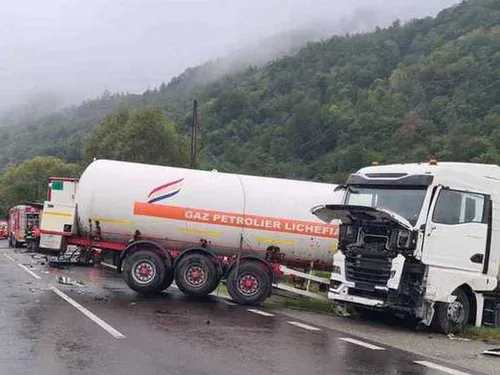 Pericol de explozie, pe Valea Oltului. O cisternă cu GPL s-a ciocnit cu un TIR. Circulația e oprită