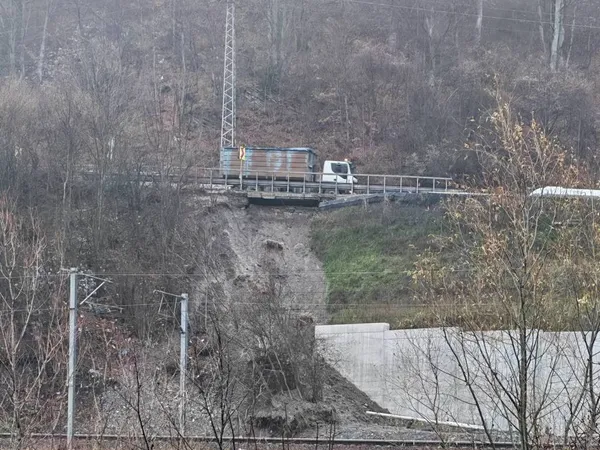 „A apărut o alunecare pe versant, sub o grindă de consolă care este în lateralul drumului.