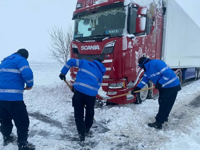 Din cauza zăpezii, traficul rutier este restricţionat pentru autovehiculele cu masa maximă autorizată de peste 7,5 tone pe trei drumuri naţionale din judeţul Galaţi.