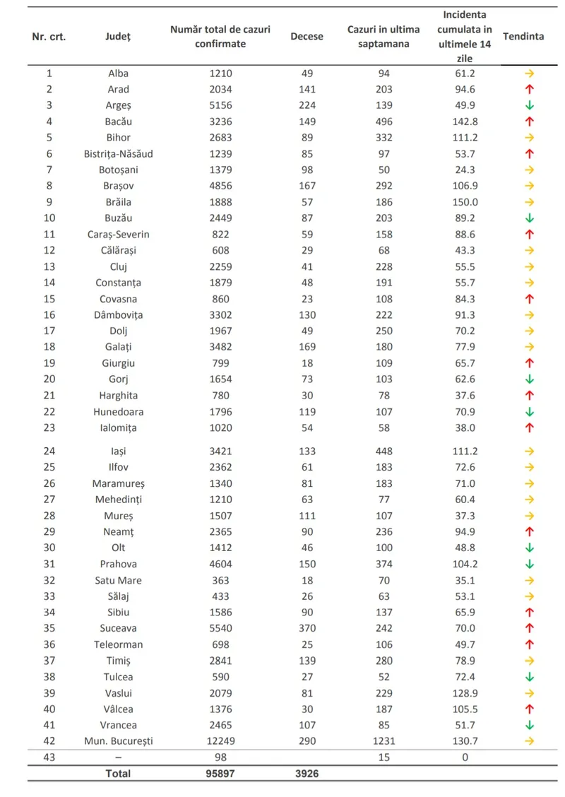 Situația deceselor și a cazurilor pe județe, până în 6 septembrie, conform INSP