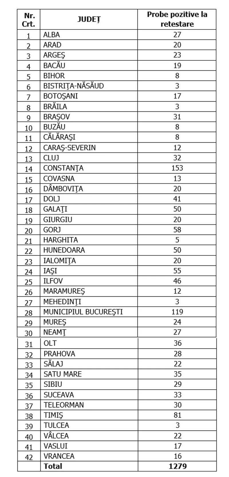 Distinct de cazurile nou confirmate, în urma retestării pacienților care erau deja pozitivi, 1.279 de persoane au fost reconfirmate pozitiv.