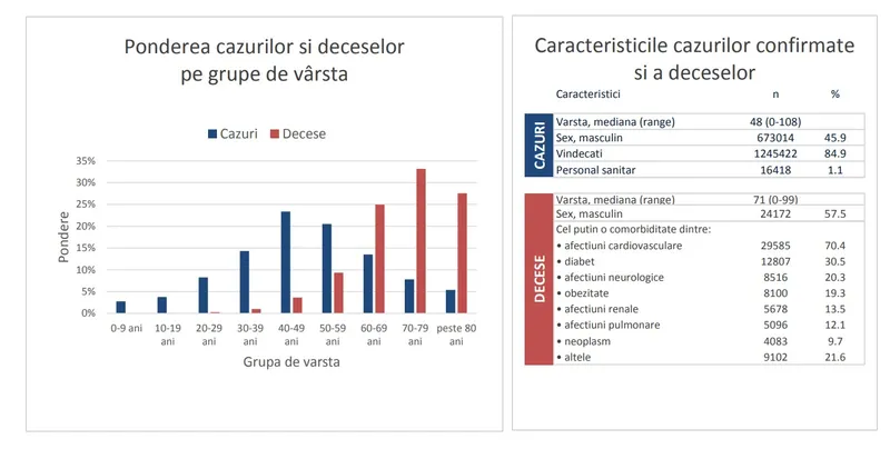85,7% din totalul deceselor au fost la persoane peste 60 ani, iar 57,5% din decese au fost la bărbați. 94% din persoanele decedate aveau cel puțin o comorbiditate asociata.