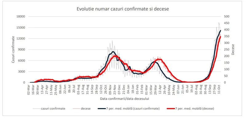 Totodată, aproape o treime dintre decese (27,5%) au fost înregistrate in București, Prahova, Constanța, Dolj si Suceava. În ultima săptămână, au fost confirmate peste 2.000 de decese.