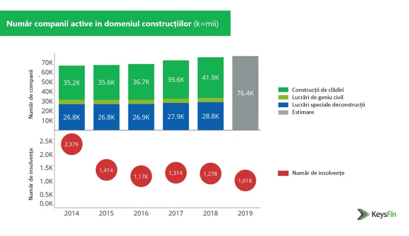 Analiștii KeysFin punctează și scăderea considerabilă a numărului insolvențelor, cu 58%, comparând recordul negativ de 3000 insolvențe din 2013 cu cele 1018 insolvențe din 2019. Totodată, în primele 4 luni ale lui 2020 au fost înregistrate 315 insolvențe în sectorul construcțiilor, ceea ce arată că, momentan, acest sector nu a fost puternic afectat.