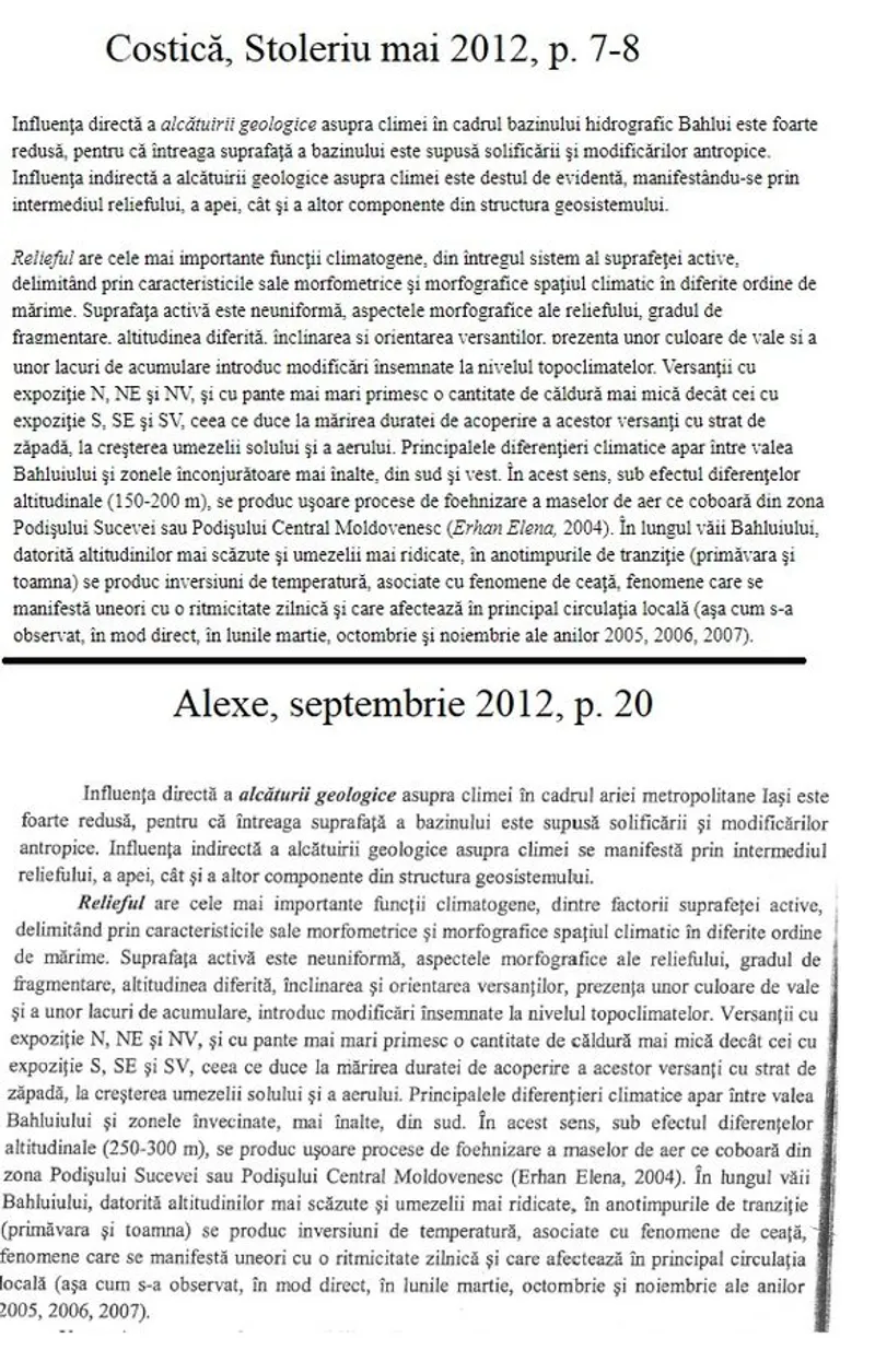 Una dintre paginile copiate în doctoratul lui Alexe. Sursa: Reporter de Iași