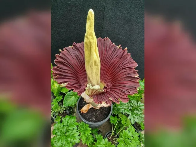 Este vorba despre o floare de Amorphophallus titanum, cunoscută sub numele de „floarea-cadavru", o specie care înfloreşte, de obicei, o dată la şapte până la zece ani. De această dată, însă, a avut nevoie de 15 ani pentru a atinge o înălţime de 135 de centimetri şi pentru a-şi deschide corola, eliberând astfel mirosul fetid caracteristic.