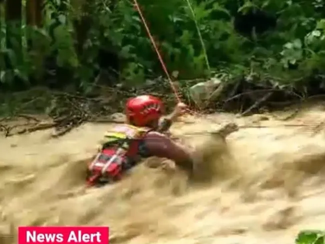 Echipele de salvare au fost solicitate să intervină pentru recuperarea unei persoane care a fost surprinsă de viitură și care a rămas blocată pe o suprafață de pâmânt între doi torenți.