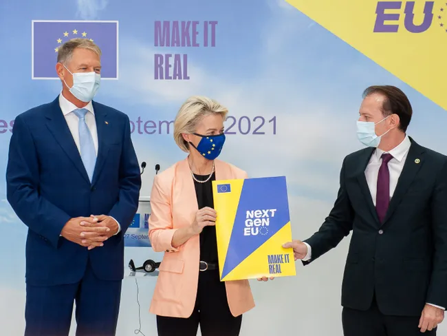 La finalul lunii septembrie, Comisia Europeană a aprobat Planul Național de Redresare şi Rezilienţă (PNRR) al României, care valorează 29,2 miliarde de euro, împărțiți în două părți aproape egale ce reprezintă granturi, respectiv împrumuturi. Executivul european a ținut cont de 11 criterii de evaluare. Din acești bani, 41% sunt alocați pentru investițiile și reformele privind mediul și tranziția „verde” iar 21% pentru digitalizarea României. Acești bani vor fi acordați în funcție de atingerea obiectivelor de pe parcursul celor cinci ani în care se aplică planul.