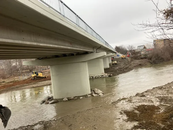 Pod din Argeș, construit în 6 ani, inaugurat cu apă sfințită: „Dumnezeu să ne ajute în lucrare”