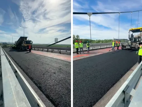 „Au început lucrările de asfaltare pe Podul de la Brăila, DN2S, km 4+500 - km 6+600, sensul Tulcea către Brăila. Circulația se desfășoară în ambele sensuri cu restricție de viteză de 30 km/h”, a transmis Direcția, precizând că lucrările vor dura șase zile.