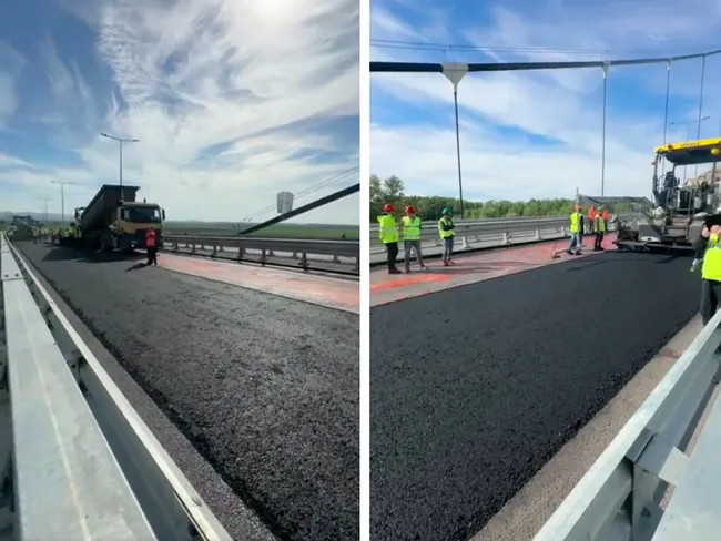 Podul suspendat peste Dunăre de la Brăila, una dintre cele mai importante construcții de infrastructură din România, a intrat din nou în lucrări de asfaltare.