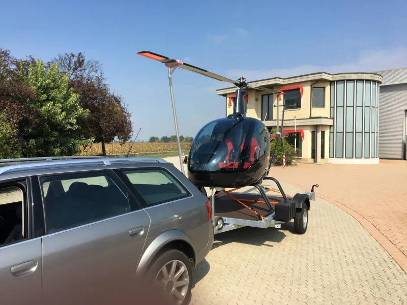 Poliția germană a descoperit doi români care transportau un elicopter folosind o remorcă auto