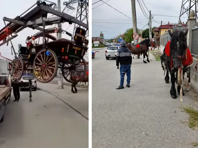 De asemenea, polițiștii spun că cei doi conducători ai căruțelor au ignorat prevederile legale care interzic deplasarea vehiculelor cu tracțiune animală în municipii.