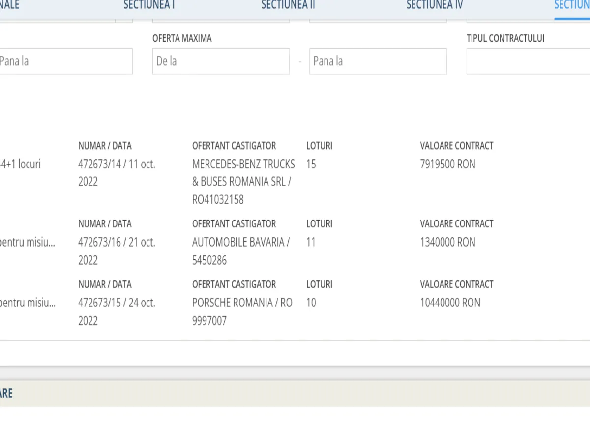 Astfel, Mercedes-Benz Trucks & Buses România va livra 5 autobuze Mercedes de minim 44+1 locuri pentru 7.919.500 de lei (contract semnat în 11 octombrie 2022, Lotul 15 din anunțul inițial de licitație), respectiv 1.583.900 lei/bucată sau 317.000 euro/bucată.
