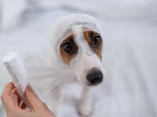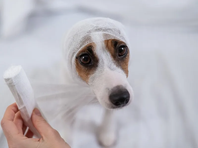 Cățelul a scăpat cu viață, dar are o gaură în cap