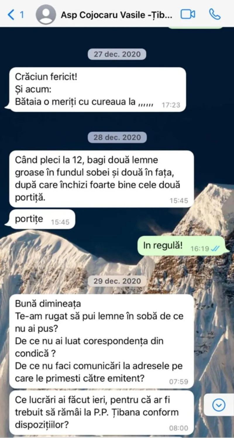 Tot scandalul ar fi început după ce șeful ei i-ar fi trimis un mesaj de Crăciun pe whatsapp: ”Crăciun fericit! Și acum: bătaia o meriți cu cureaua la…”.