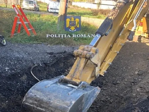 Polițiștii i-au săpat în curte unui bărbat, cu excavatorul. Fura curent cu un racord clandestin