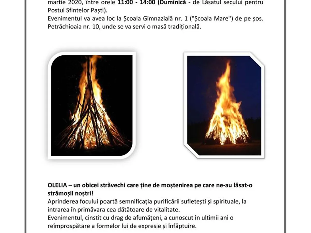 „Focul, asociat în tradiţiile populare cu forţa de purificare şi cu fertilitatea, a luat diferite forme de-a lungul timpului. În comună Afumaţi, în urmă cu câteva zeci de ani focul se făcea într-o cutie mică, legată cu o sârmă şi care era învârtita de participanţi, în timp ce strigau «Olelie, Olelie/De capul lui…să fie!».
