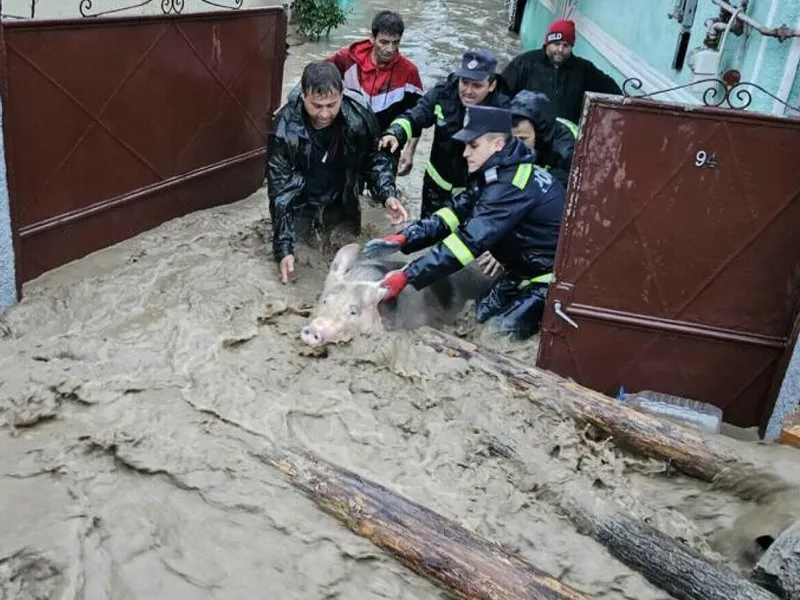 A plouat de-a rupt pământul în Tulcea şi, în doar câteva zeci de minute, străzile s-au transformat în adevărate râuri, iar maşinile locuitorilor au fost luate de ape, potrivit unui post TV.