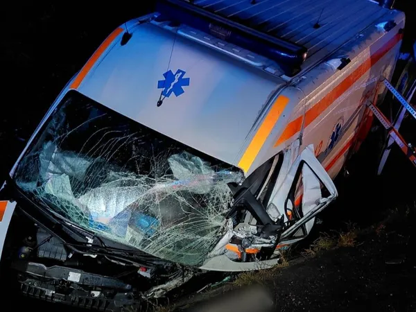 Tragedia s-a produs într-o curbă periculoasă, unde un șofer de 40 de ani ar fi pătruns pe contrasens, izbindu-se violent de autosanitară.