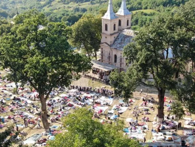 Dealul din fața Mănăstirii Nicula din județul Cluj seamănă anul acesta mai degrabă cu un camping.