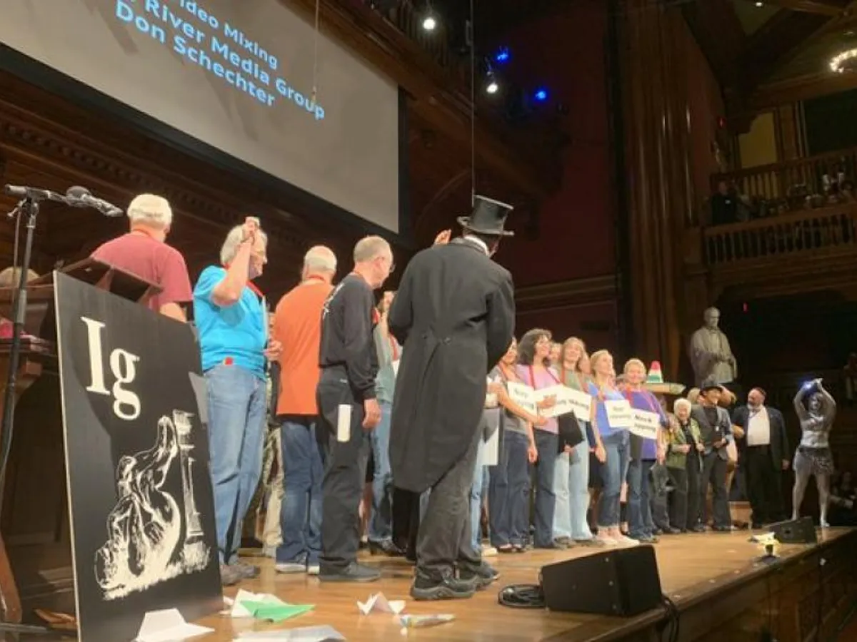 Zece premii Ig Nobel au fost acordate joi, în cadrul ceremoniei anuale de la Universitatea Harvard din SUA, unde o fetiță de opt ani a avut obligația de a aplica regula de un minut cu privire la discursurile câștigătorilor, spunând „Vă rog să vă opriți, eu mă plictisesc”.
