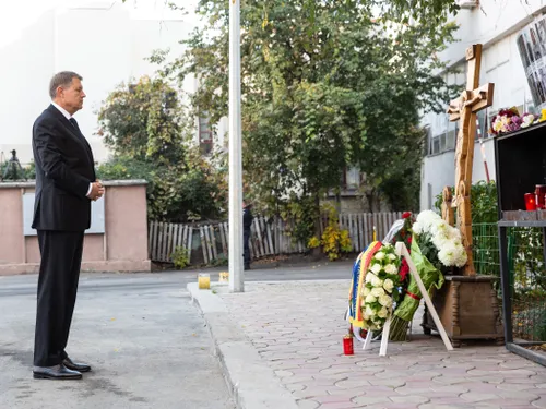 Preşedintele Klaus Iohannis a depus o coroană de flori la Clubul Colectiv