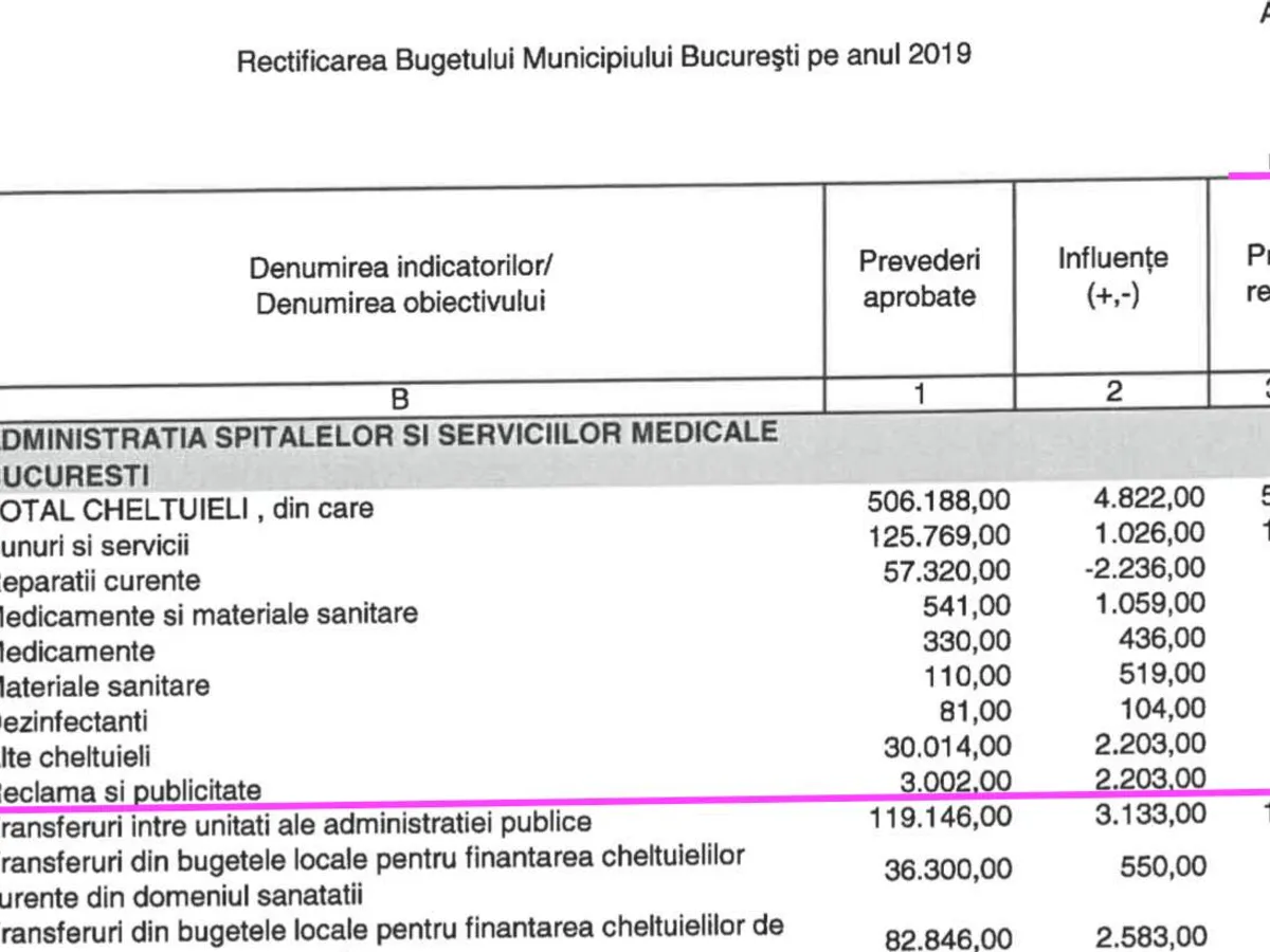Administrația Spitalelor și Serviciilor Medicale din București cheltuie peste cinci milioane de lei, anual, pe reclama proiectelor sale, mai mult decât investește în medicamente, produse sanitare și dezinfectanți la un loc, potrivit rectificării bugetare postate pe site-ul PMB.