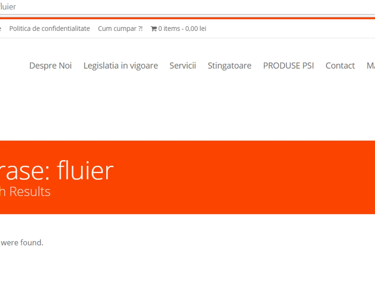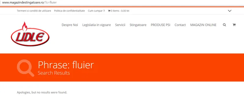 Firma are la vânzare o gamă variată de produse, dar motorul de căutare al site-ului nu găsește nimic la categoria „fluier”.