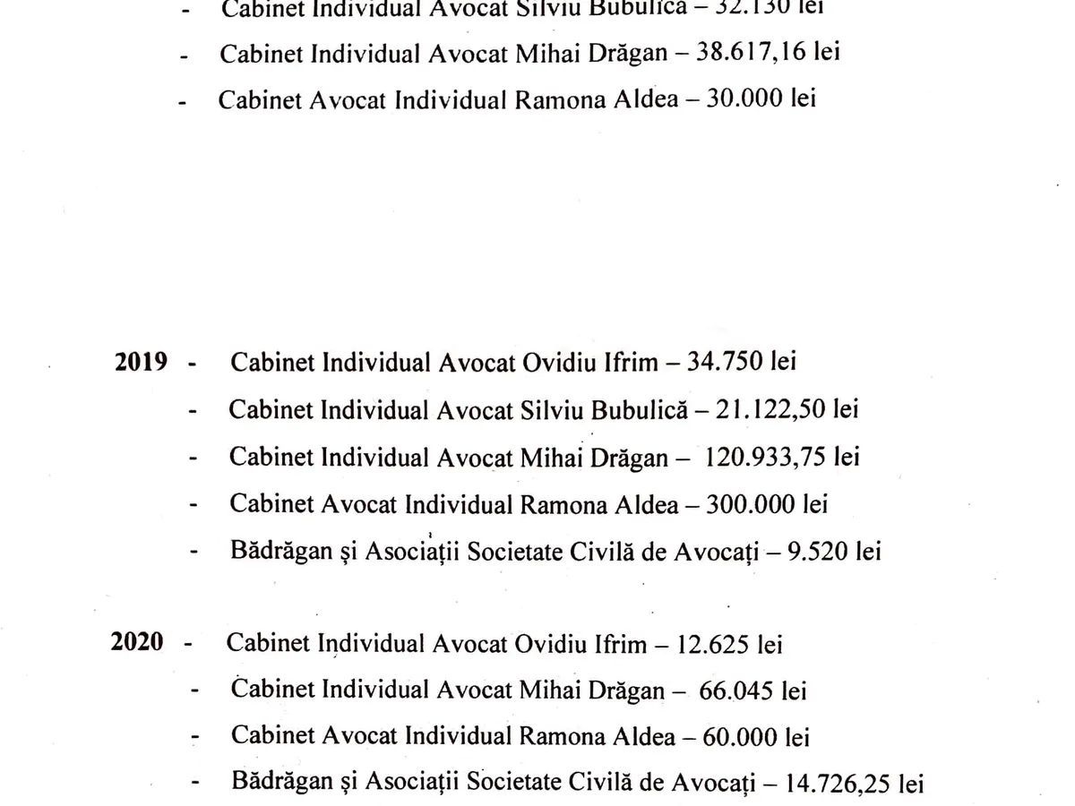 Pe locul doi se află avocatul Mihai Drăgan, care a beneficiat de 225.000 de lei, pe parcursul a trei ani, 2018-2020. Acest avocat a fost alături de fostul primar Dan Tudorache în timpul scandalului proceselor verbale încheiate după numărătoarea voturilor de la alegerile locale din septembrie.