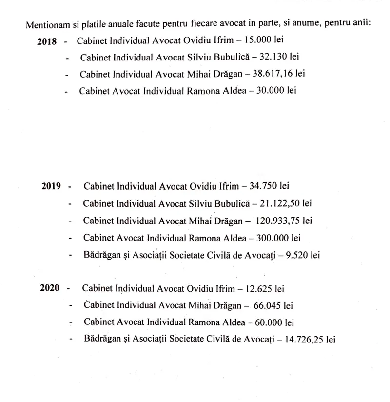 Din datele prezentate de Armand, cele mai mari sume le-a încasat avocata Ramona Aldea: 390.000 de lei, din totalul de circa 750.000 lei plătiți de primăria Sectorului 1 către diferite cabinete de avocatură.