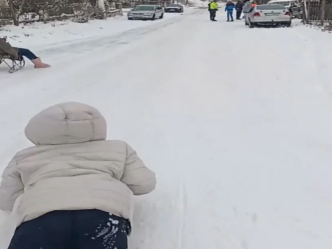Primarul unei comune din Constanța a închis o stradă pentru ca cei mici să se dea cu săniile