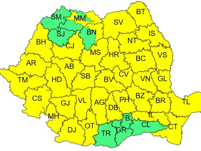 Rafale de vânt de până la 70 de km/h se vor înregistra în județele: Tulcea, Constanţa, Galaţi, Brăila, Ialomiţa, Călăraşi, Vrancea, Buzău, Covasna, Prahova, Braşov, Dâmboviţa, Argeş, Sibiu, Vâlcea, Gorj, Hunedoara, Mehedinţi şi Caraş-Severin.