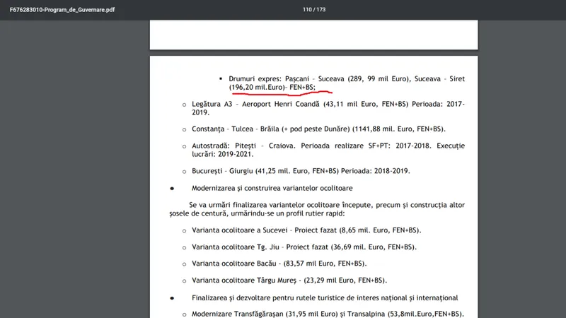 Printre investițiile (numeroase) pe care PSD și le-a asumat în document se stipula: