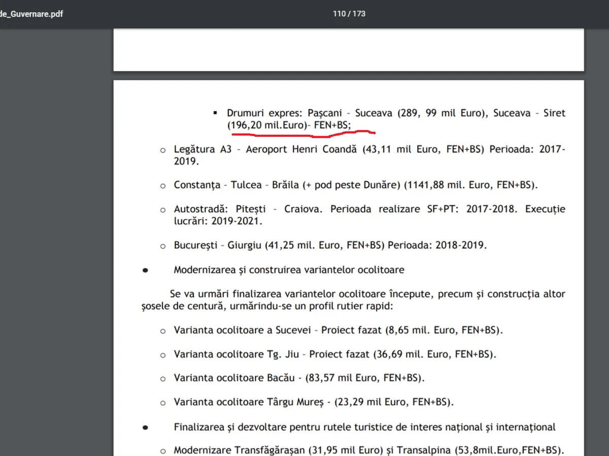 „Coridorul IX paneuropean, prin realizarea unor tronsoane de drum/valoare estimată: Drumuri expres: Paşcani – Suceava (289, 99 mil Euro), Suceava – Siret (196,20 mil.Euro)”.