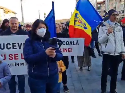 Peste 1.000 de oameni au protestat, duminică, în centrul municipiului Suceava, cerând retragerea proiectului vaccinării din Parlament, renunţarea la purtarea măştii şi revenirea tuturor elevilor la şcoală.