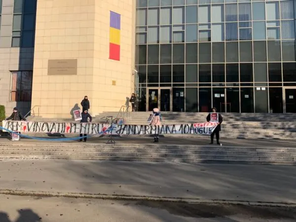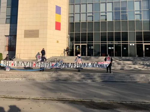 Mai mulți protestatari s-au adunat pe treptele instanței. Ei cer pedepsirea șefilor Jandarmeriei implicați în reprimarea violentă a manifestației din Piața Victoriei din 10 august 2018.