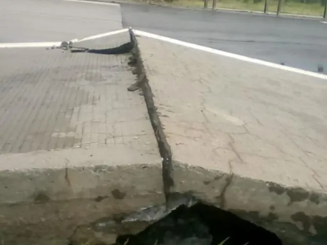 Foto: Betonul de pe banda de urgență a Autostrăzii Soarelui s-a ridicat periculos săptămâna trecută. sursa: Digi24