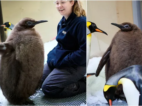 Puiul de pinguin imperial este sociabil, curios, încrezător şi interacţionează adeseori cu ceilalţi pinguini şi cu paznicii săi, a precizat Emily Thornton.