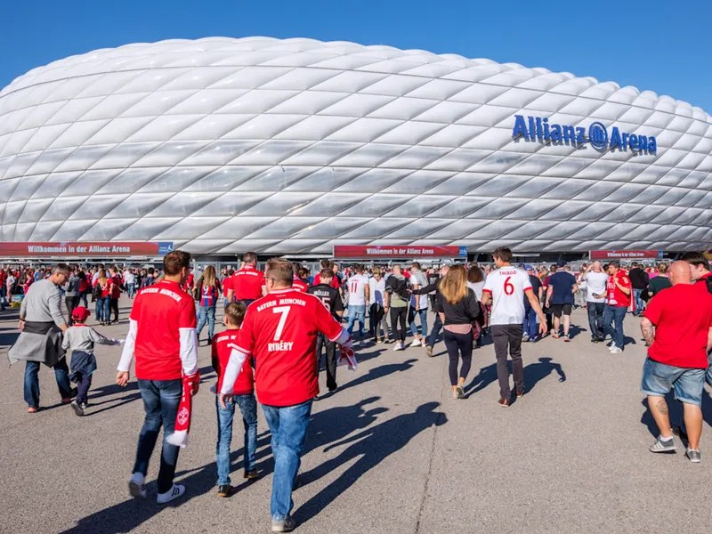 Iar unele corporații multinaționale și-au construit chiar portofolii de nume de stadioane, cum este cazul Allianz, care a cumpărat drepturile onomastice pentru șapte arene importante (inclusiv stadioanele pe care joacă Bayern Munchen și Juventus Torino).