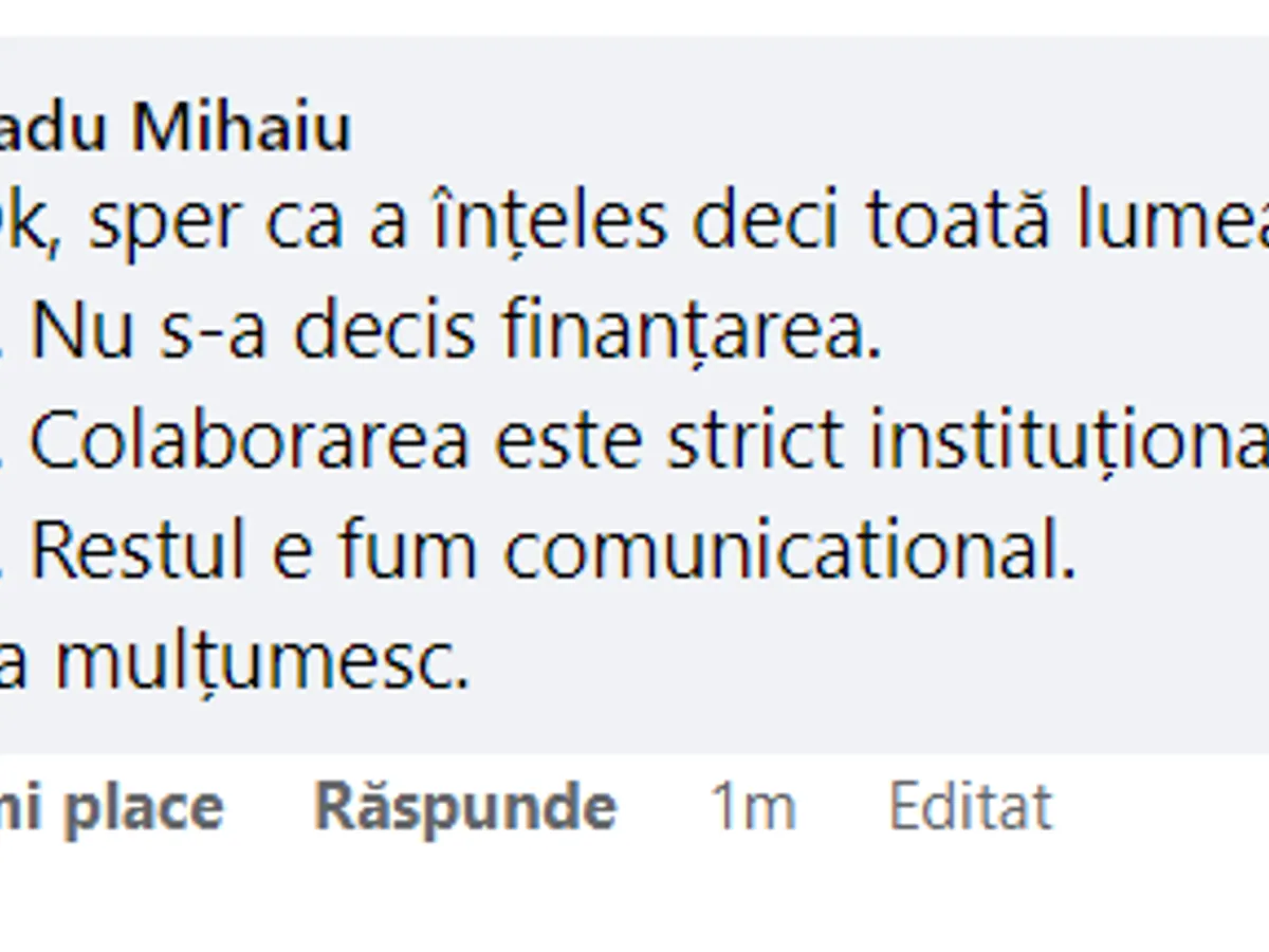Mihaiu punctează, însă, pe Facebook, că există bani în acest sens, dar că nu au fost îndeplinite deocamdată condițiile legale de acordare a ei.