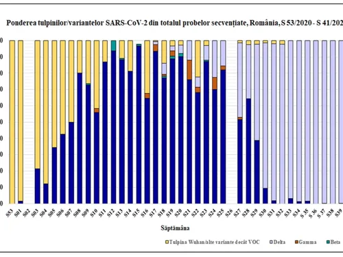 Rata de infectare cu o tulpină COVID care provoacă îngrijorare (VOC) a ajuns în România la 89 la sută, până în 17 octombrie, conform unui raport al Institutului Național de Sănătate Publică (INSP).