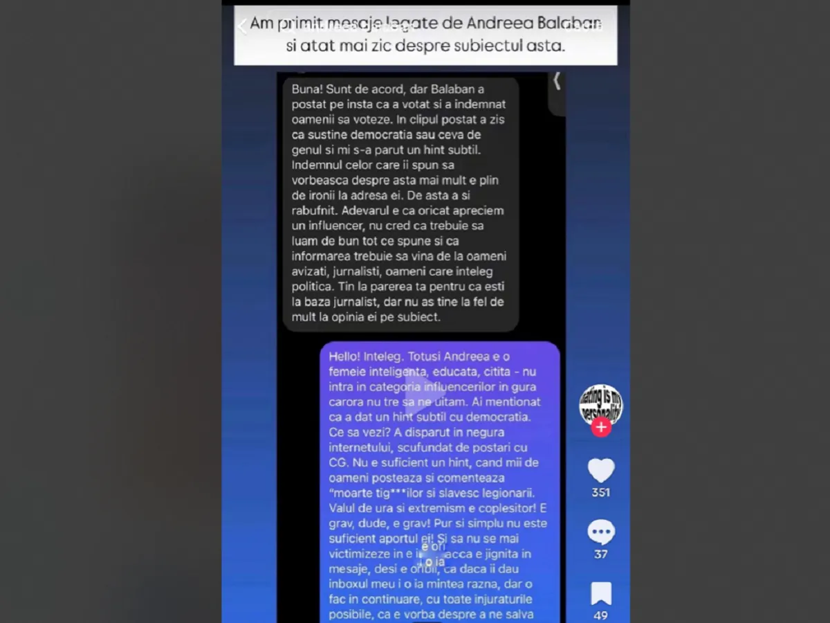 Deși o mare parte dintre influenceri ajung celebri pe rețelele de socializare pentru părerile pe care le împărtășesc, Andreea Balaban a mai afirmat într-o altă postare despre faptul că până acum a vorbit doar despre domeniile de interes și nu despre politică.