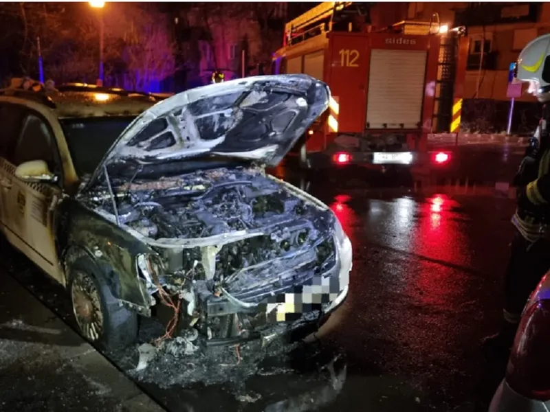 Taxi incendiat în miez de noapte, în stil mafiot. Cine a sunat la 112