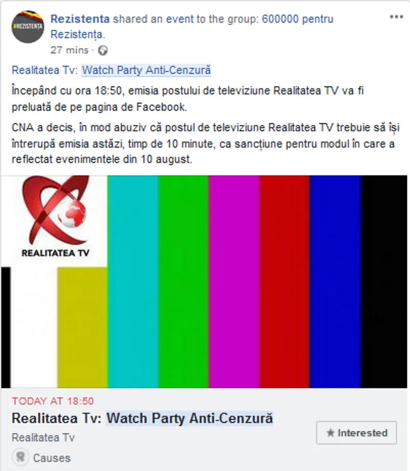 Un eveniment pe Facebook numit „Watch Party Anti-Cenzură” a fost creat de comunitățile civice Corupția Ucide, Geeks for Democracy, Inițiativa România și Rezistența.